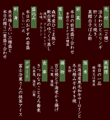 *表示献立は、イメージです、旬や仕入れ状況に応じて産地及び内容が一部変更となる場合がございます。
