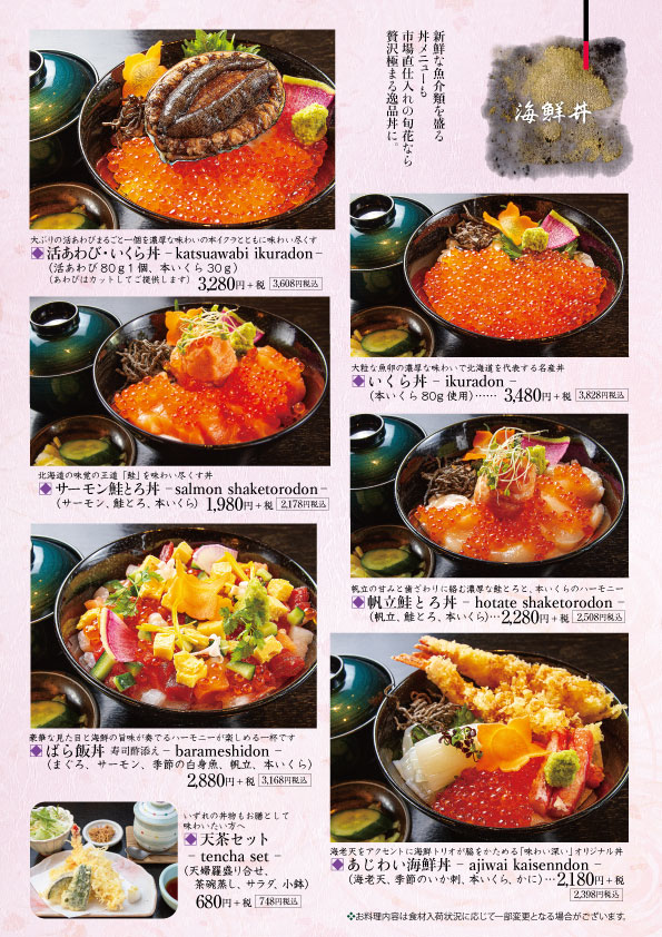 海鮮丼メニュー充実致しました