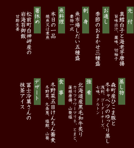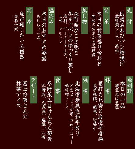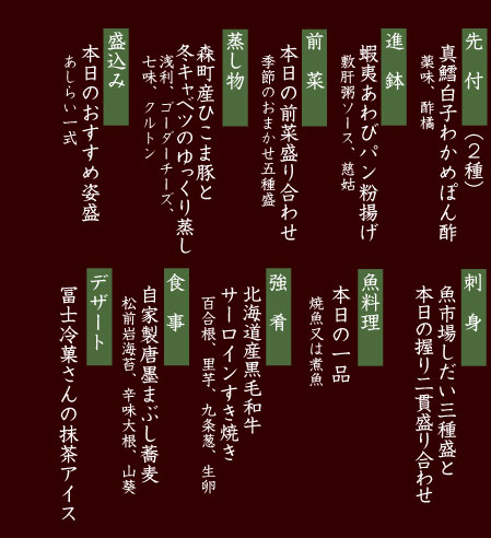 *表示献立は、イメージです、旬や仕入れ状況に応じて産地及び内容が一部変更となる場合がございます。