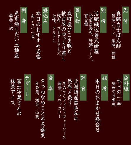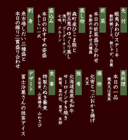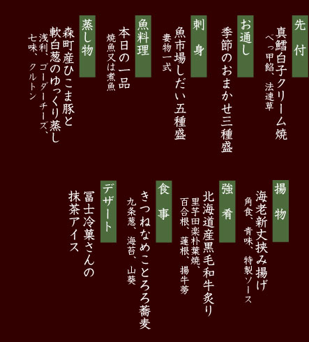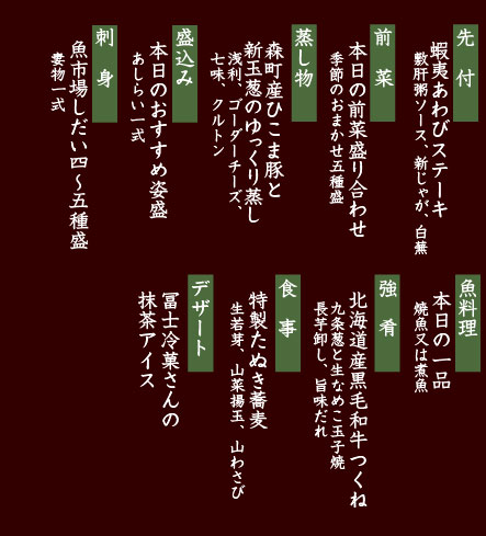 *表示献立は、イメージです、旬や仕入れ状況に応じて産地及び内容が一部変更となる場合がございます。